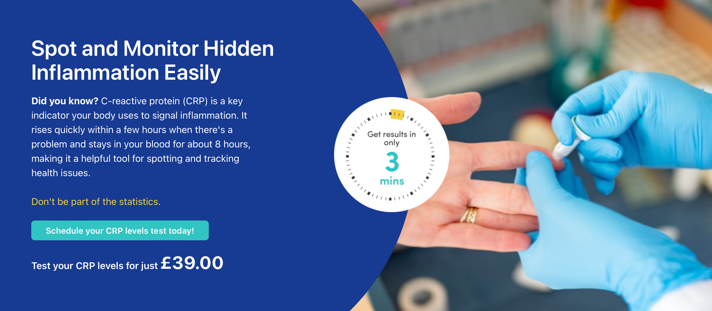 A C-reactive protein (CRP) test measures how much CRP is in your bloodstream. CRP is a protein made by your liver and released into the blood when there’s inflammation in your body. CRP levels are normally low, but they rise rapidly with an infection, a chronic disease or another health issue that causes inflammation. This test detects and monitors inflammation lending valuable insights into your health.
