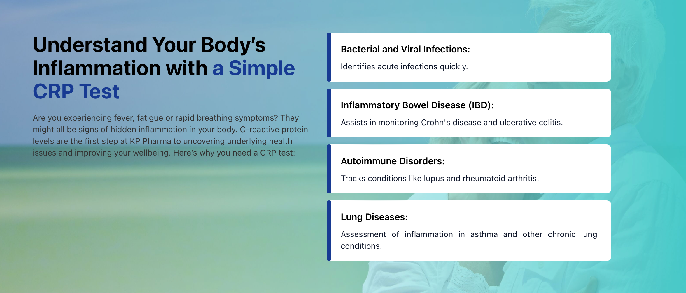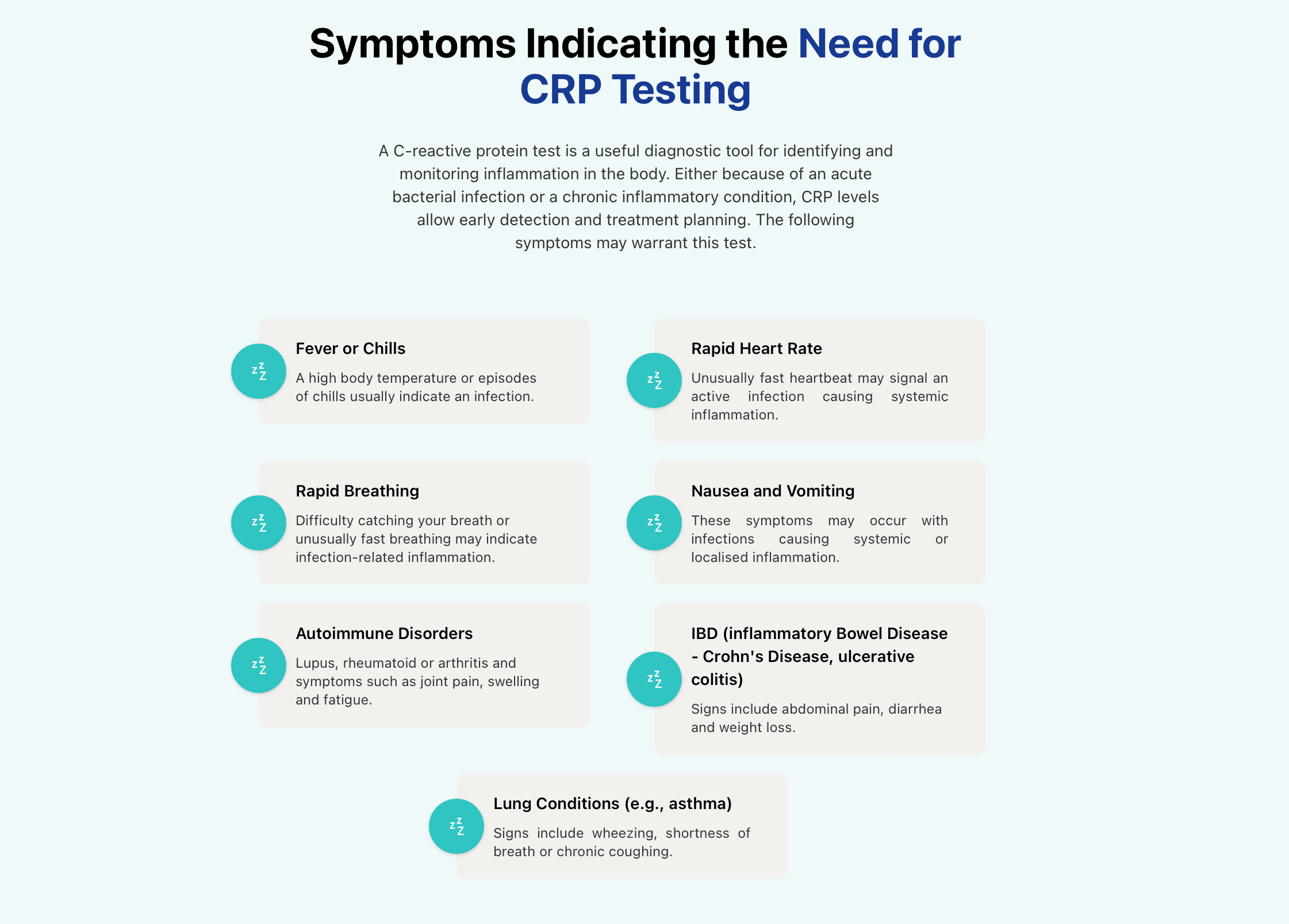 - Non-Infectious Causes: Elevated CRP may also result from obesity, smoking or physical injury.