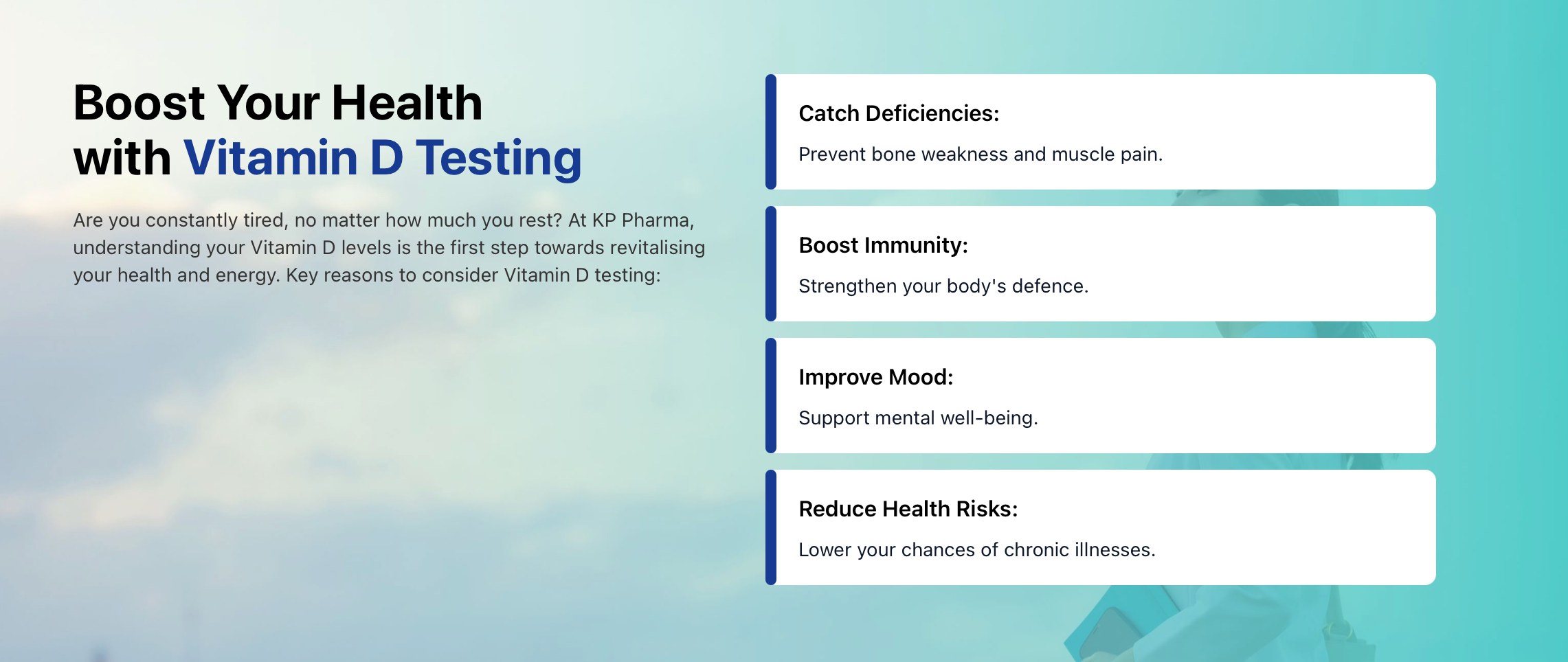 We use a specialised test to measure something called 25-hydroxyvitamin D (you can think of it as the active form of Vitamin D) in your blood. This is like taking a snapshot of your body's Vitamin D status, which is super important for keeping your bones strong and supporting your overall health.