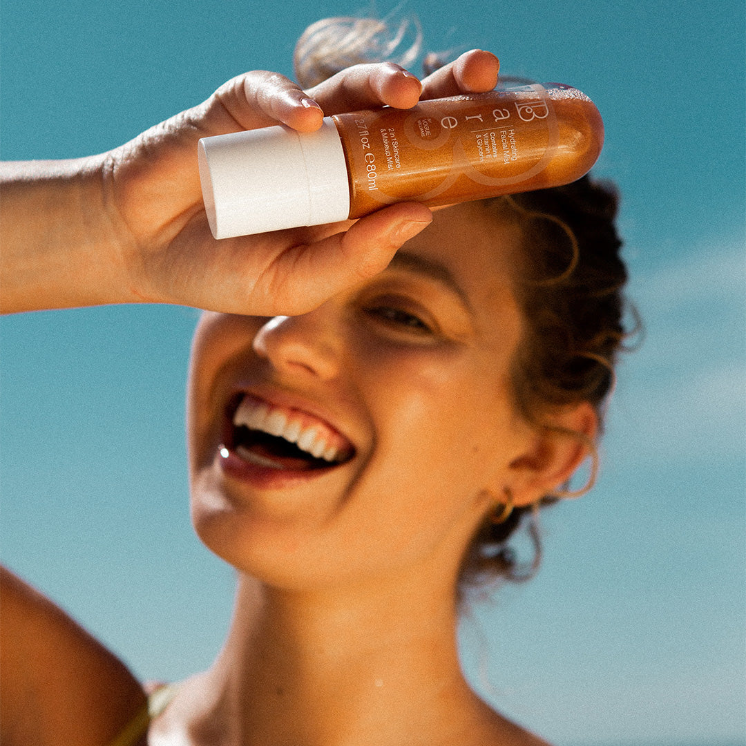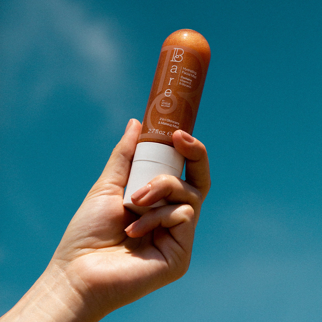 Bare by Vogue’s Hydrating Facial Mist can be used in a number of ways. Apply over makeup for a dewy, natural glow, pop it in the fridge to cool down during the warm summer days, or pair it with your preferred Bare by Vogue Face Tanning Mist or Serum for the ultimate ‘Bare face’ look. The lightweight fluid of Hydrating Facial Mist combines nourishing hydration with an incredible ethereal shimmering effect so that you are always good to glow.