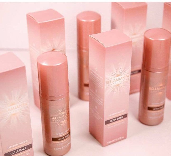 Bellamianta Luxury Tanning Mousse is the perfect solution to achieve that sun-kissed glow all year round! Available in three shades - Medium, Dark, and Ultra Dark - this luxurious tanning mousse is infused with supercharged DHA and organically derived tan enhancers, giving you that signature Bella Glow you know and love.