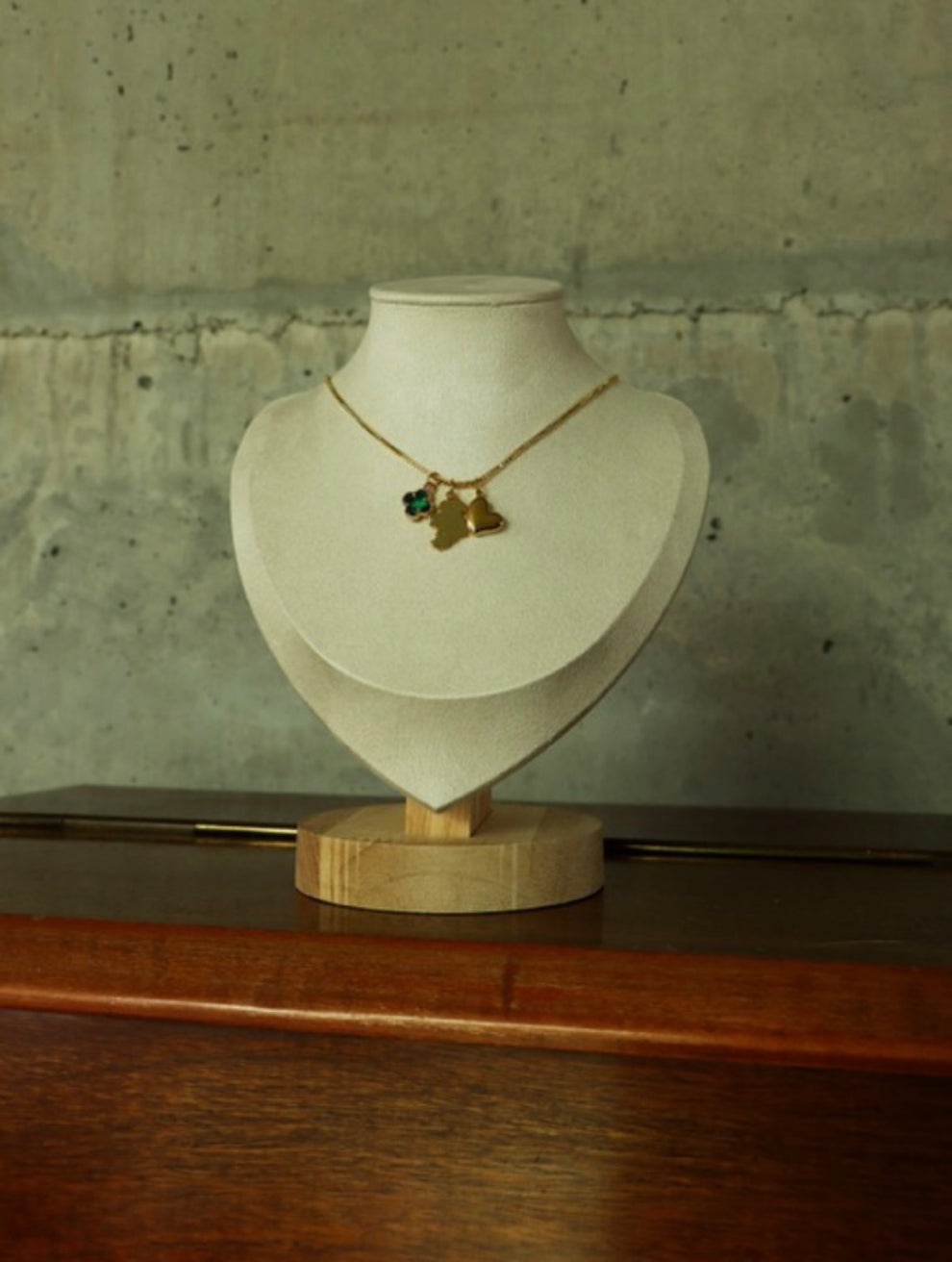 Three charms stacked together. The map of Ireland symbolising our wonderful island, the emerald clover celebrating luck and the golden love heart emphasising love. A trio stack reminding us of home, luck and love.