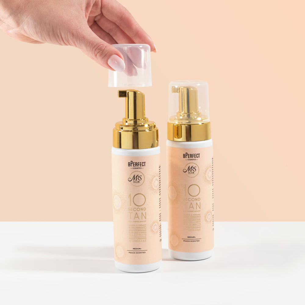 Introducing BPerfect X Mrs Glam 10 Second Tan Medium+ Tanning Mousse that moisturises and nourishes the skin while giving a stunning everyday golden glow.