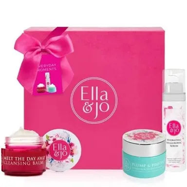 Ella & Jo Everyday Moments Gift Set features three full size products, the Melt The Day Away Cleansing Balm, the Plump & Protect Hydrating SPF 30 Day Cream and the Hydrating Hyaluronic Serum to cleanse, hydrate, and nourish your skin. Treat yourself or a loved one to a self care moment this Christmas with this luxury Ella & Jo gift set!