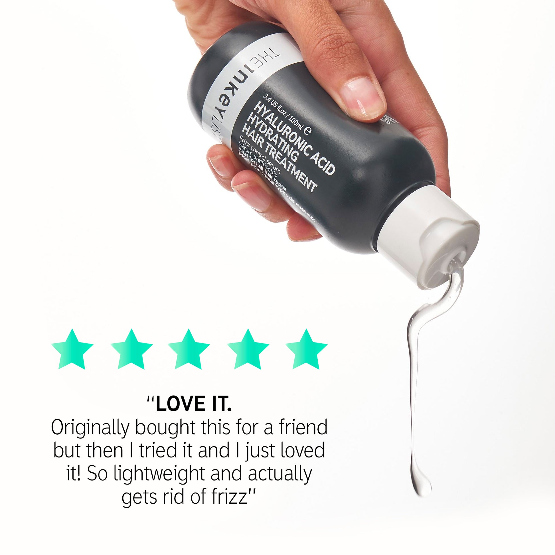 Hyaluronic acid is a classic ingredient, traditionally known in skincare for its highly hydrating properties. Lack of hydration in the hair can be caused by a number of things, including over washing, water temperature being too high, using heated tools without heat protection or humidity. When your hair becomes dry, the hair cuticle is rough and open, causing hair to lose moisture and become