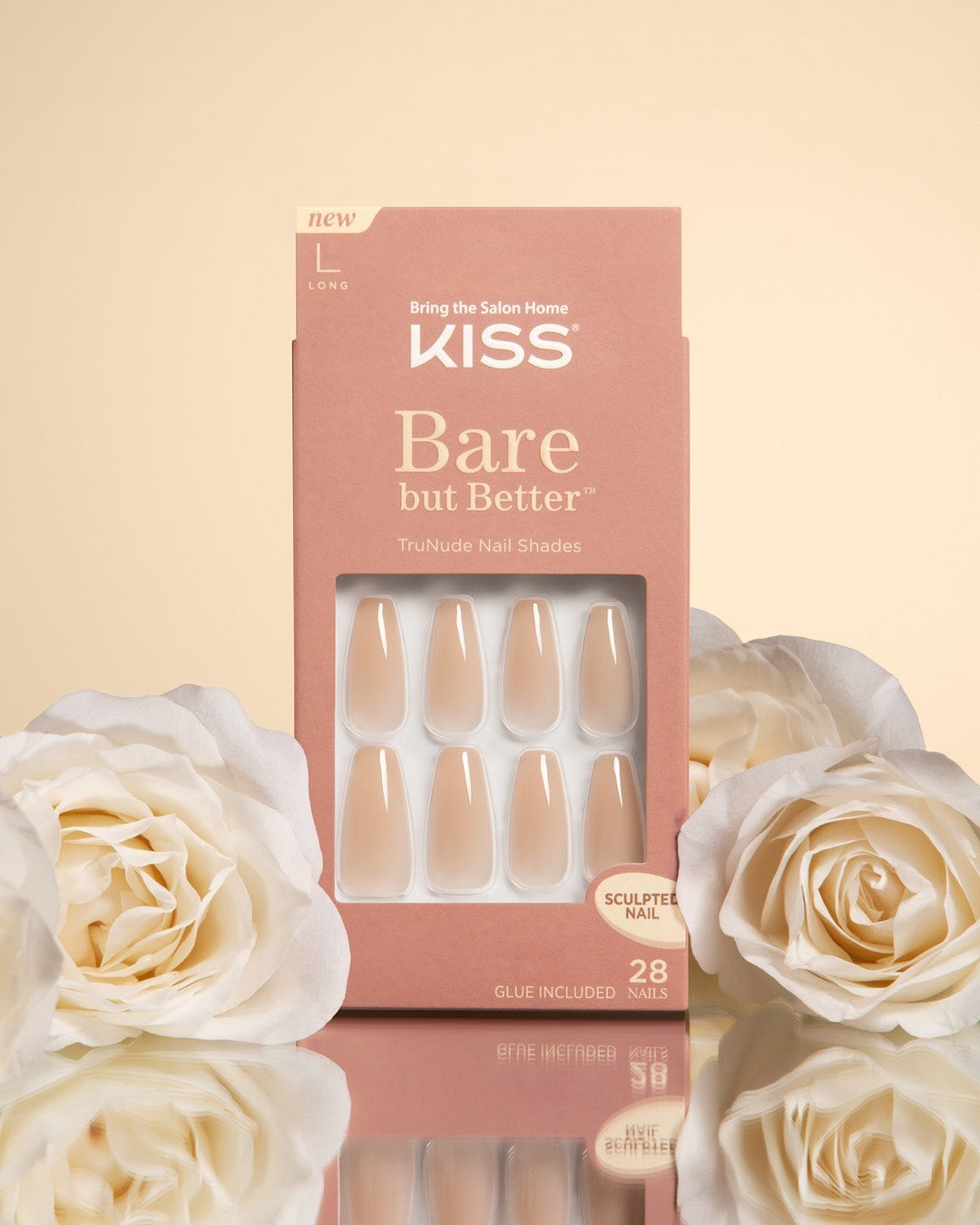Kiss Bare But Better False Nails Press On Nails 28 Nails With Adhesive 2g. Nude Glow: