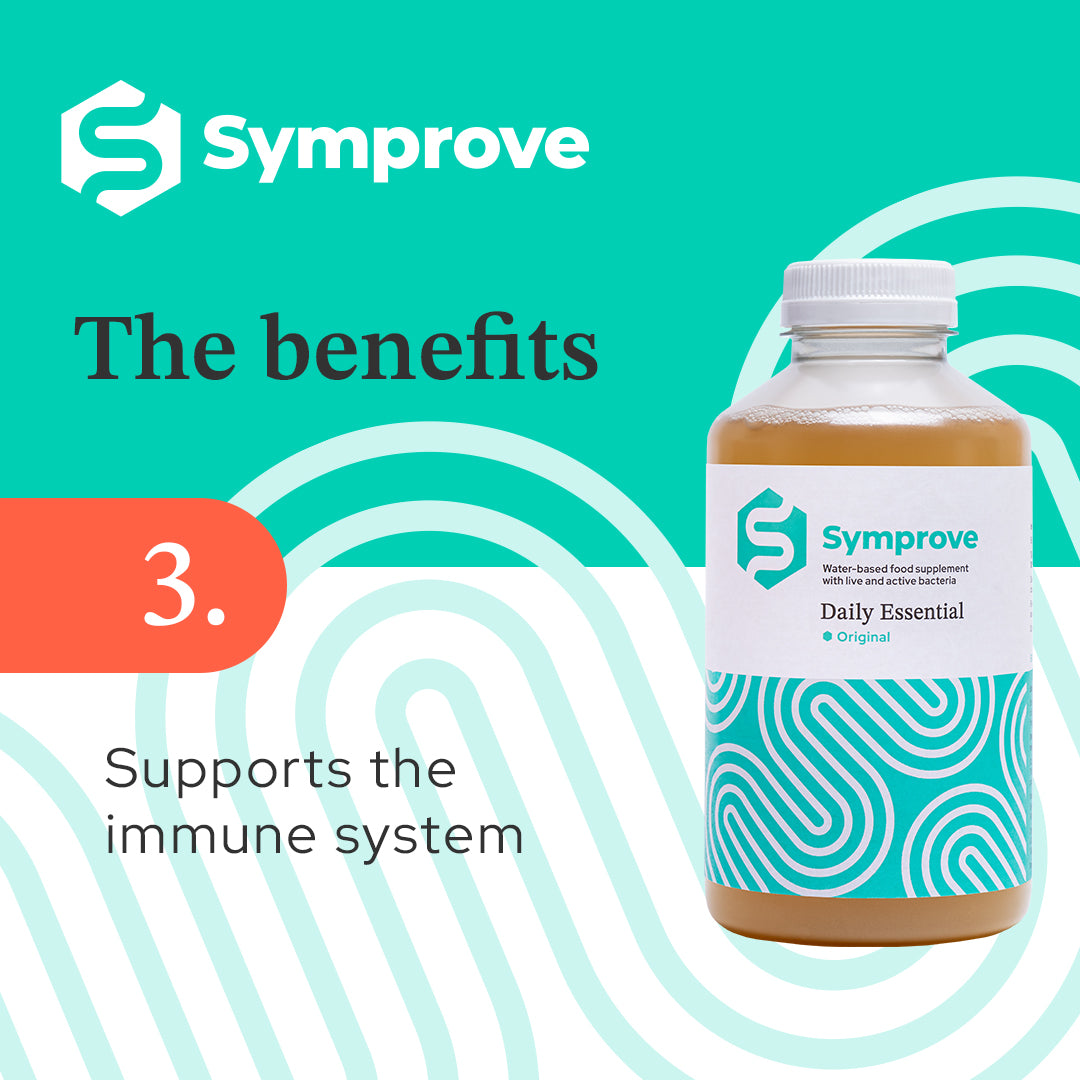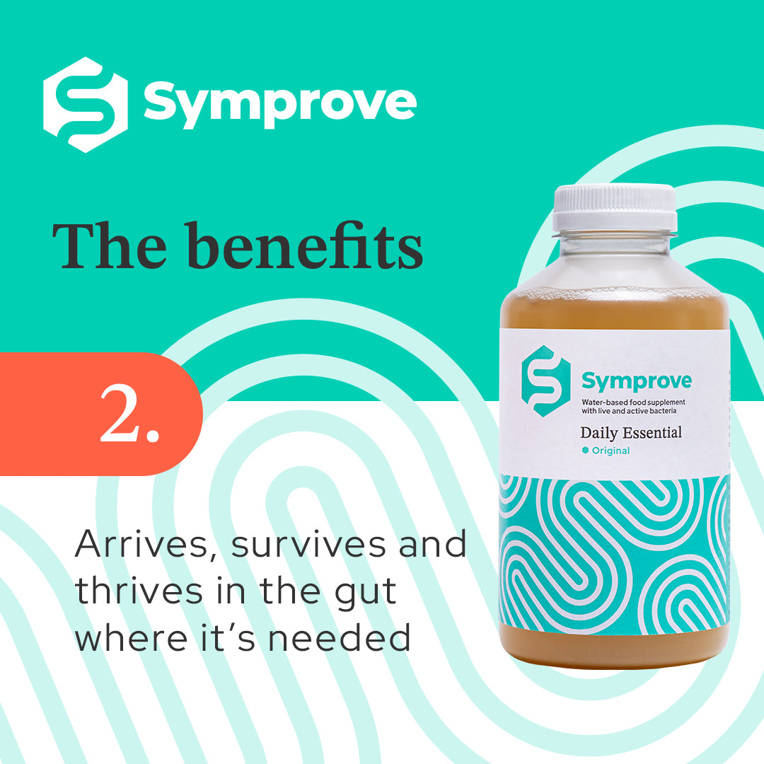 The bacteria in Symprove replenishes the microbiome, aids digestion, immunity and the production of vitamins and minerals.