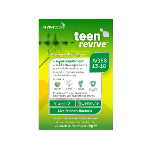 Teen Revive contains a superior blend of high-quality ingredients formulated to fuel and support a teenager’s active and healthy lifestyle. This special formula includes 22 active ingredients to an all-rounded support of each teens heart, brain, bones and their immune system.