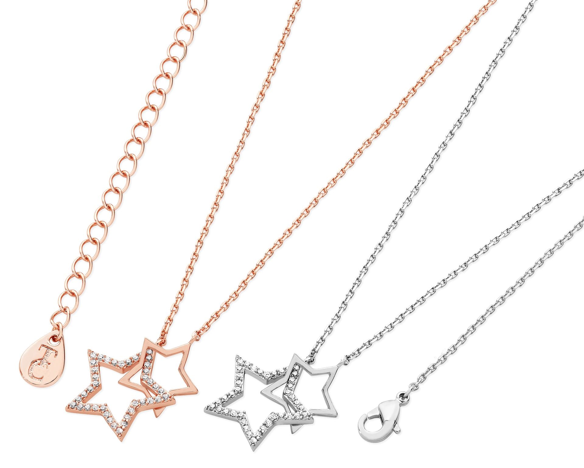 Guaranteed to be a staple piece for years these on-trend interlocking stars comes in rose gold A larger crystal encrusted star is interlocke with a lustrous polished gold star. This pendant suspends from a cable chain which secures safely with a lobster claw clasp.