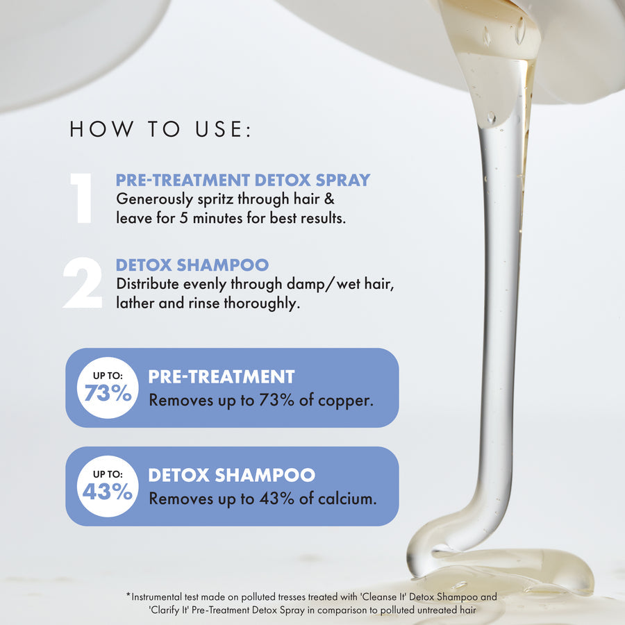 Packed with powerful cleansing agents, it tackles hard water salts and metal deposits like iron and copper, leaving your hair feeling light, clean, and full of life.